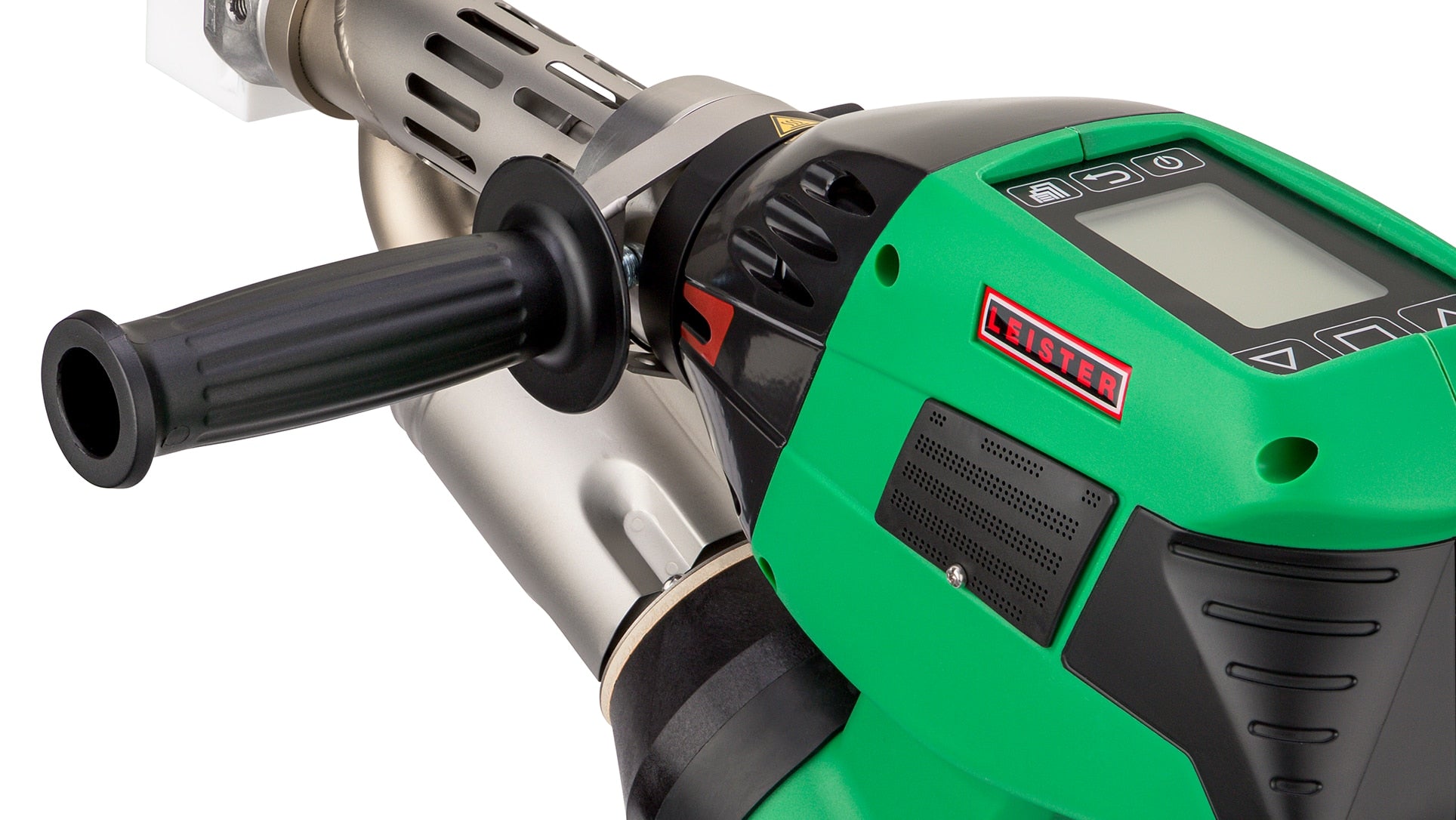 - Интегрированный канал для нагретого воздуха на конце экструдера позволяет устанавливать насадки в любом положении с поворотом на 360°.